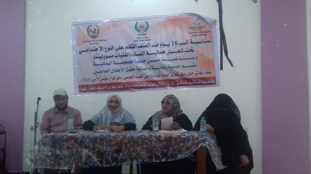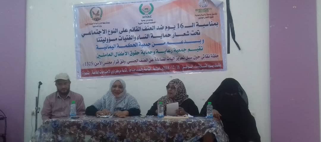 16 days of gender-based violence(GBV),  The Society for the Care and Protection of the Rights  Working for Children made a group discussion on the International Resolution (1325)  On ways to reinforcement accountability mechanisms for GBV funded by HYِAC