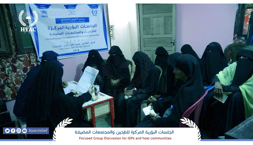 As part of the participatory evaluation program, HYAC concluded the focus sessions for IDPs and host communities in partnership with UNHCR and in coordination with Protection Cluster in Yemen. This is through joint dialogue sessions, during which the most important needs, obstacles and challenges facing different segments of society are discussed and the best solutions to be addressed