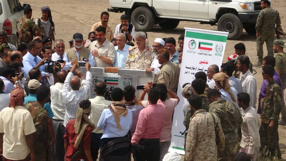 HYAC inaugurated Tuesday morning with the participation of Mr. Ahmed Salmin, Governor of Aden Governorate, Major General Ahmad Abdullah Al Turki, Governor of Lahj Province, Engineer Tawfiq Al Sharjabi, Acting Minister of Water and the delegation of the Kuwait Relief Society. Local Water Directorate in Aden Governorate.