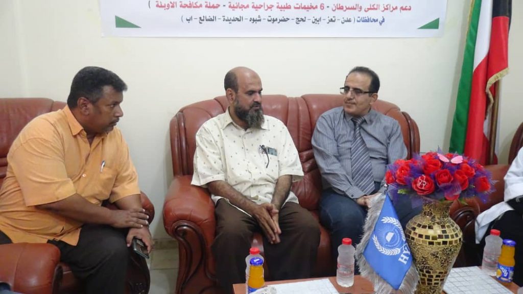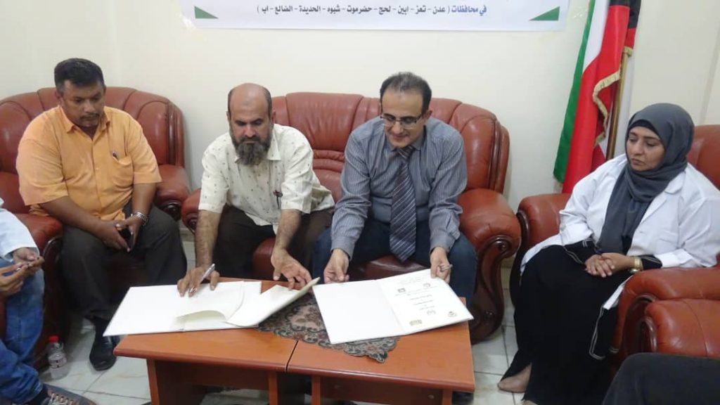 In order to launch the implementation of a number of medical projects in a number of governorates of the Republic; With generous support from the Islamic Heritage Revival Society and the Patients Helping Fund society in the sisterly State of Kuwait, the memorandum was signed by the government side, Minister of Public Health and Population, Dr.: Qassem Mohammed Buhaibah, and on the part of the association, the Secretary-General of (HYAC) – Aden Branch, Mr.: Muhammad Abd Al-Wasa .